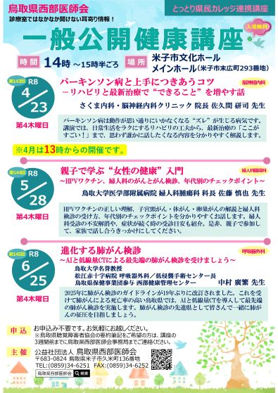 鳥取県西部医師会 一般公開健康講座 ~診察室ではなかなか聞けない耳寄りな話~